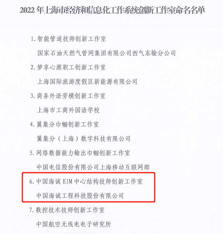 7月12日,上海市经济和信息化工作系统工会工作委员会正式发布了《关于命名2022年海市经济和信息化工作系统创新工作室的决定》,市经信系统工会授予“bw必威西汉姆联官方网站EIM数创中心结构技师创新工作室”。