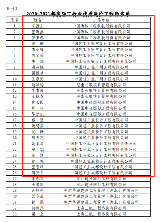 ·公司喜获“2020-2021年度轻工行业优秀工程造价咨询企业和优秀造价工程师(专业)”多项荣誉