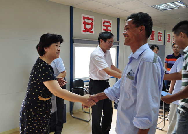 不知不觉中,夕阳已徐徐落下,离开工地时,这群头戴安全帽的辛劳的人们,又投入到紧张的工作中去了,只有爽朗的笑声还工地上回荡。