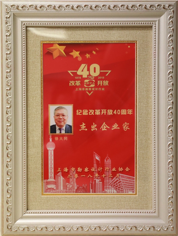作为上海市勘察设计行业的最高荣誉,峰会现场颁发了“上海市勘察设计行业改革开放40周年突出贡献奖”各类奖项。公司荣获集体和个人多项大奖,其中,公司从行业内1800多家规模以上勘察设计企业中脱颖而出,被评为“上海市勘察设计行业十大标杆企业”;徐大同董事长被评为“上海市勘察设计行业杰出企业家”;宁飞被评为“上海市勘察设计行业勘察设计工匠”。