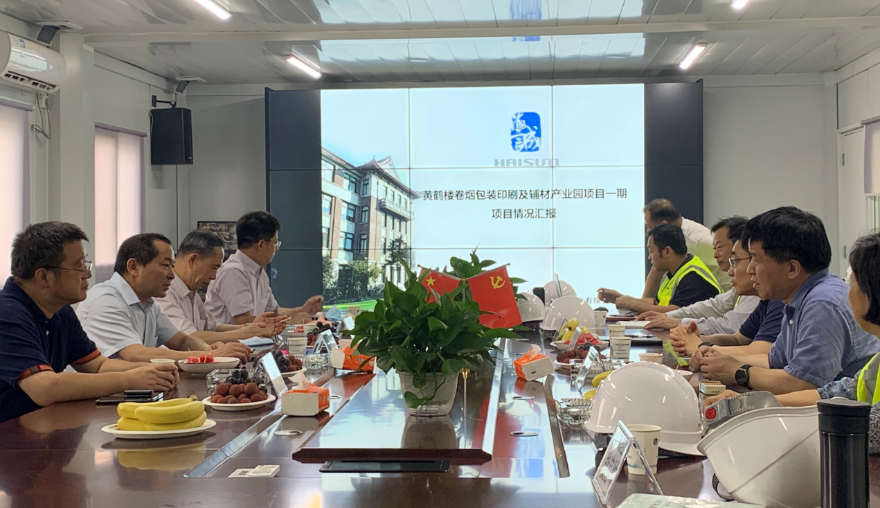 随后,郭建全一行又抵达黄鹤楼卷烟包装印刷辅材产业园项目现场,实地查看项目施工进度,听取该项目进展情况汇报和数字化成果展示,与项目部全体员工进行亲切座谈,并对该项目的施工进度、风险防控、安全质量等工作做出重要指示。郭建全强调,要发挥项目党建共建优势,提高团队凝聚力和战斗力,保质保量完成本项目;要全面做好协同,维护处理好与业主、联合体成员以及各参建单位的关系;要进一步加强精细化管理,通过信息化手段提高管理效率;要通过该项目打造一支“铁军”,全面提高工程总承包能力,力争承接更多烟草项目,实现发展海诚,壮大中轻。