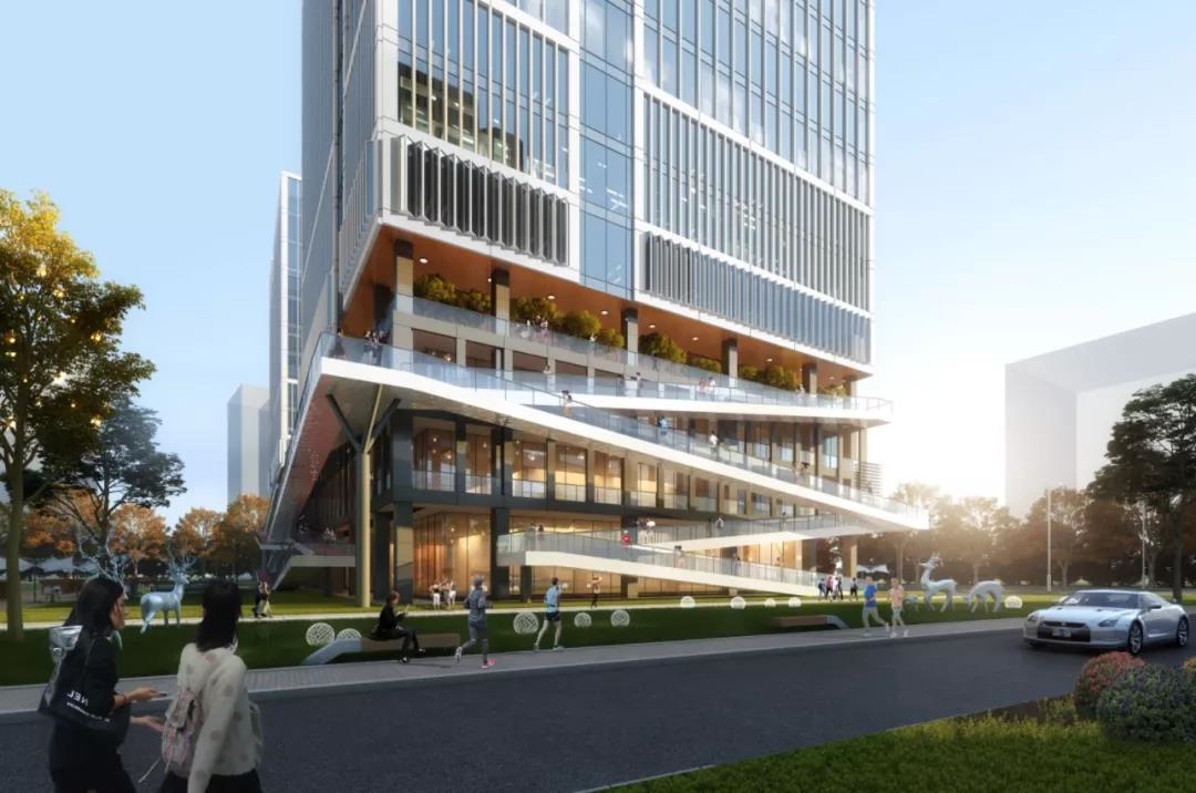 该项目设计思路巧妙,楼宇独具特色,创新的运用“之”字形步道环通整个建筑群体,使人与自然和谐地融入城市一隅。园区设计“以最契合用地的布局”和“丰富天际线”为原则,以“万物生长,蓬勃向上”为寓意,从园区建筑风格到产业核心理念,既形象又抽象地传达出绿色节能环保的立意,充分彰显“国际风、未来感、海湖韵” 的城市建设理念,为城区建设增添活力风采。