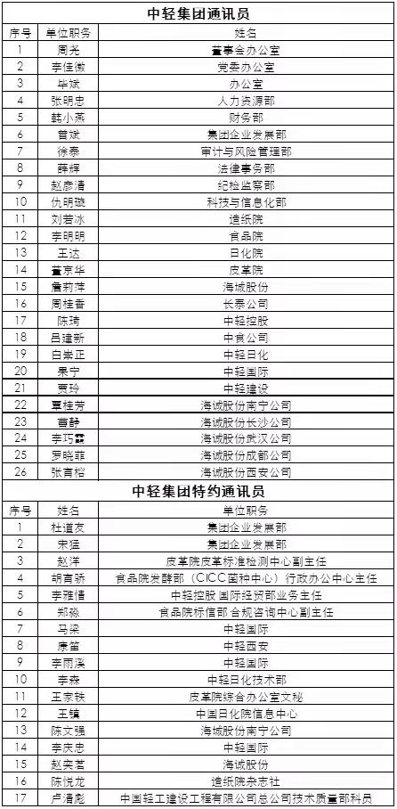 集团通讯员和特约通讯员名单如下: