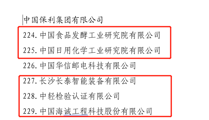 日前,国务院国资委改革办发布了“科改示范企业”名单。保利中轻所属中国食品发酵工业研究院、中国日用化学工业研究院、长沙长泰智能装备有限公司、中轻检验认证有限公司、bw必威西汉姆联官方网站榜上有名。