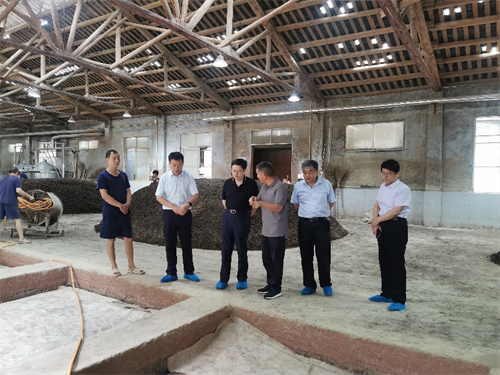 调研期间,王珂灵一行参观了酿酒车间、制曲车间、酒库等。