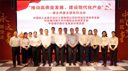 bw必威西汉姆联官方网站南宁公司科特迪瓦项目党支部与中信银行南宁分行国际业务部党支部、中信银行南宁五象支行党支部开展银企共建主题党日活动。