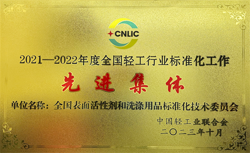 中国日用化学研究院作为秘书处承担单位运营的全国表面活性剂和洗涤用品标准化技术委员会荣获“2021-2022年度全国轻工行业标准化工作先进集体”称号。