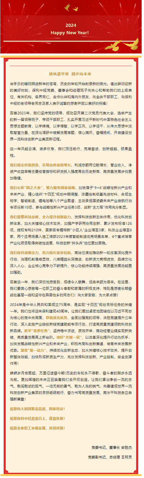 保利中轻2024年新年贺词