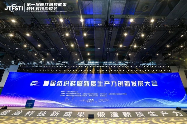 2024年4月,晋江公司聚焦国家重大战略,成功举办了首届纺织鞋服新质生产力创新发展大会。大会以“接洽科技新成果,锻造新质生产力”为主题,吸引政府、高校、科研机构及企业的400余名代表参与,共同探讨纺织鞋服行业的高端化、智能化、绿色化创新发展路径,为行业注入新活力新动力。