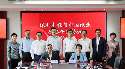 4月23日,中国轻工集团有限公司(以下简称保利中轻)与中国纸业投资有限公司(以下简称中国纸业)在保利中轻总部就进一步深化合作座谈交流并签署战略合作协议。保利中轻党委副书记、总经理赵国昂;保利中轻副总经理,中国造纸院党委书记、董事长孙波;中国纸业党委书记、董事长钟天崎,副总经理曹卫良、谢先龙,总经理助理、总工程师单立伟出席签约仪式。