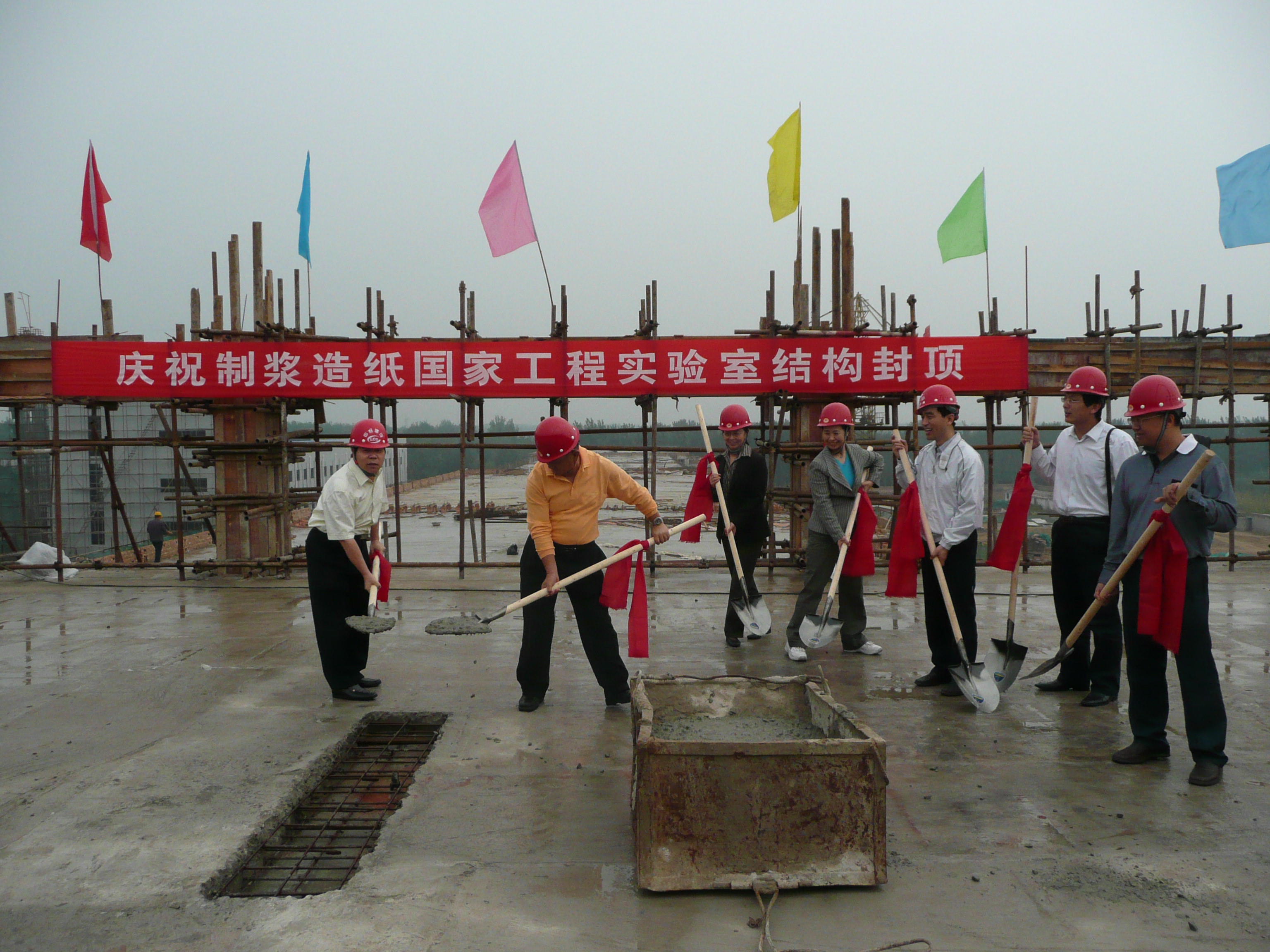 926,中国制浆造纸研究院制浆造纸国家工程实验室项目主体结构封顶仪式在河北省廊坊市举行,陈鄂生总经理、曹振雷副总经理出席了该仪式。