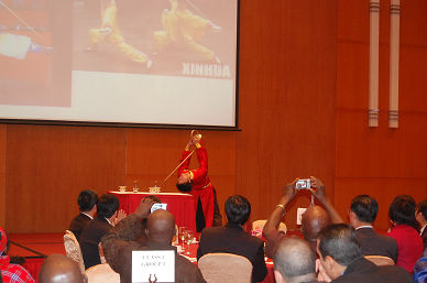 20091230,中国食品发酵工业研究院举办了“商务部发展中国家食品安全检测技术培训班”新年联欢会,来自48个发展中国家的86名学员欢聚一堂共庆2010年新年。集团公司陈学忠董事长、商务部国际商务官员研修学院郭英杰处长、常鹏副处长、张玉琪副处长、杜兆君副处长应邀出席了联欢会,中食院王洁副书记、程池副院长应邀到会。陈学忠董事长向全体学员祝贺新年并向学员及学员家属表示慰问;郭英杰处长代表商务部向全体学员表达了新年祝福,并预祝培训班圆满成功。