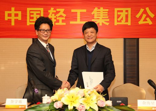 俞海星总经理与集团公司副总经理兼中国造纸装备公司总经理马思一签订责任书