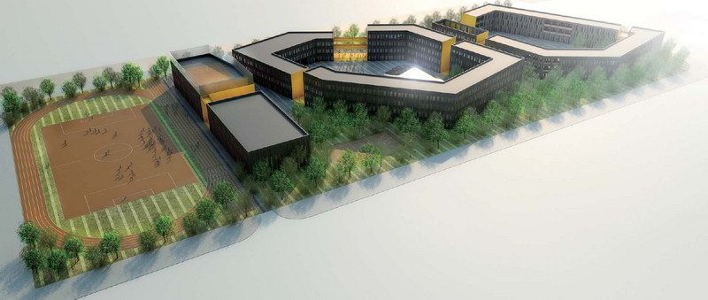 教学楼为局部四层,层高3.9m,建筑高度16.86m。阶梯教室为单层建筑,局部设置夹层,建筑高度为8.150m。餐厅为二层建筑,层高5m,建筑高度为11.050m。体育馆为单层建筑,局部设置夹层,建筑高度为11.015m。立面设计采用GRC挂板、玻璃及木材,力图通过精致的细节设计,创造出精美的品质。