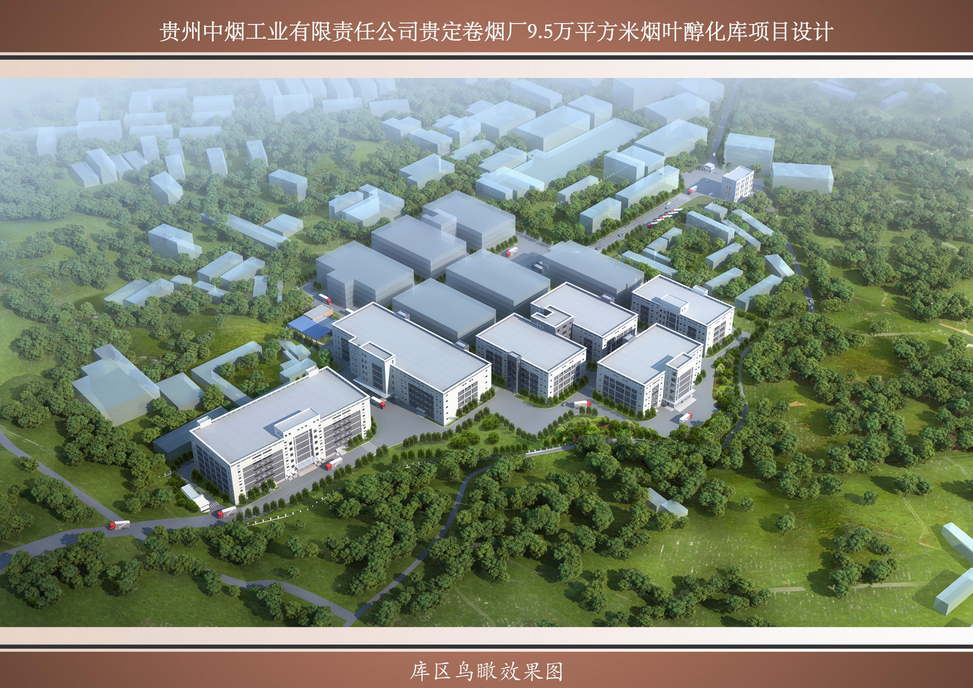 项目建设于贵州中烟工业有限责任公司贵定卷烟厂内,建设用地为自有用地。库区总用地面积91050㎡,约合136.6亩;原有、在建建筑面积70192㎡,新建建筑面积94997㎡,总建筑面积165189㎡。其中新建烟叶仓库92812㎡。项目由新建4#仓库、6#仓库、7#仓库、8#仓库、9#仓库、库区办公楼;库区动力中心;大门等建构筑物组成。